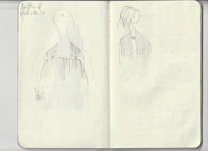 The studio has built a variety of partnerships with producers of different textile waste streams over the years. The fabric the Sunray dress is made from is a silk which we receive as off cuts from a network we have built of bridal companies across the UK. This very fine silk usually comes in large triangular off cuts (wedding dresses tend to be circular when cut out.) We developed the wide tubular panelling technique with this fabric and implemented it in seemingly random stacks of multiples, so the dress had a frenetic quality. Ordered when static and chaotic during motion.