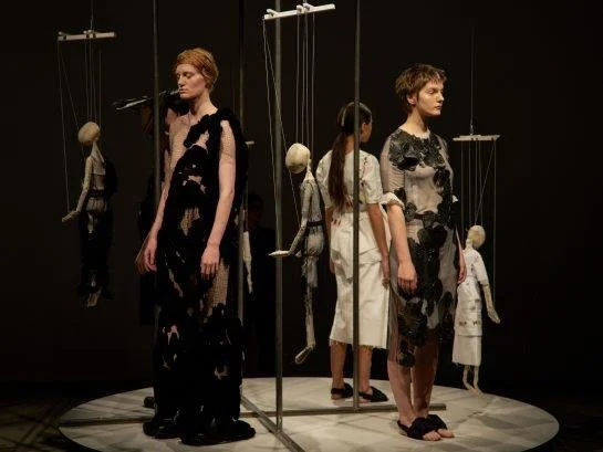PHOEBE ENGLISH was chosen to feature as one of the artists to participate in the V&A’s renowned series “Fashion in Motion“. Phoebe presented highlights from her entire archive collections in miniature, displayed across 30 hand painted marionettes created with artist and puppet maker Judith Hope. The installation show was presented in the Museum’s Raphael Gallery, highlights from which can be seen here.
